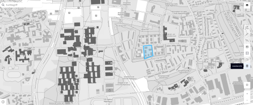 Wenn Ihnen noch kein XPlanGML vorliegt, navigieren Sie einfach in der Kartenansicht zum Plangebiet. Unter Verwendung des Mausrads zum Zoomen und Ziehen mit gedrückter Maustaste zum Verschieben des Kartenausschnitts finden Sie leicht an die gewünschte Stelle. Bitte beachten Sie, dass die maximale Zoomstufe mit dem Maßstab 1:94 erreicht ist und Sie nicht weiter hineinzoomen können. Es muss mindestens eine Fläche eingegeben werden.