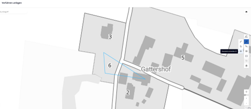 | + | *Sie nutzen das Werkzeug direkt: Nachdem Sie das Werkzeug aktiviert haben, können Sie eine Fläche einzeichnen. Danach können Sie erneut das Werkzeug aktivieren oder ein Zeichenwerkzeug auswählen und eine weitere Fläche über die Grenzen der ersten Fläche einzeichnen. | ||