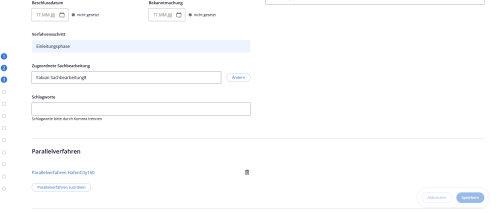 • Klicken Sie auf die Speichern-Schaltfläche, um Ihre Angaben am Planverfahren zu persisitieren.
