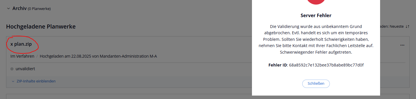 Fehlermeldung Dateiname